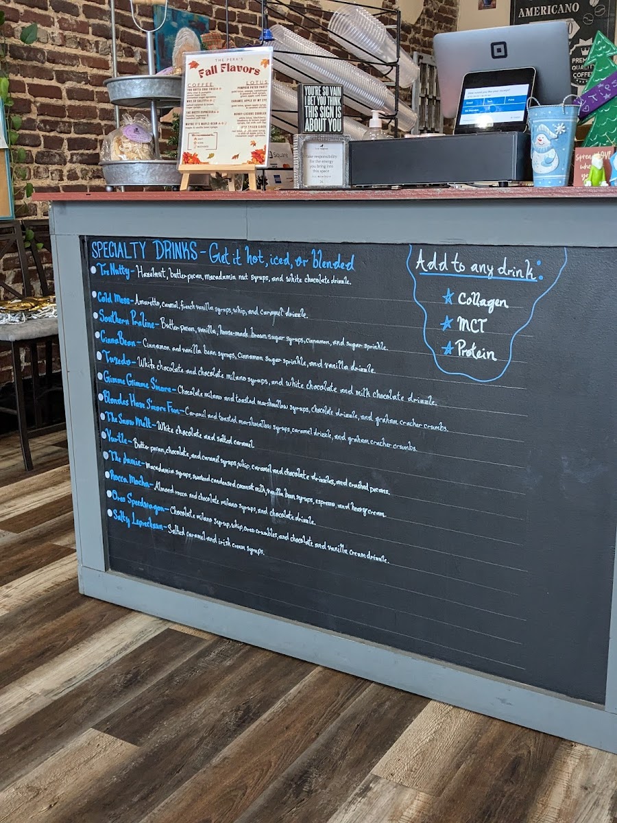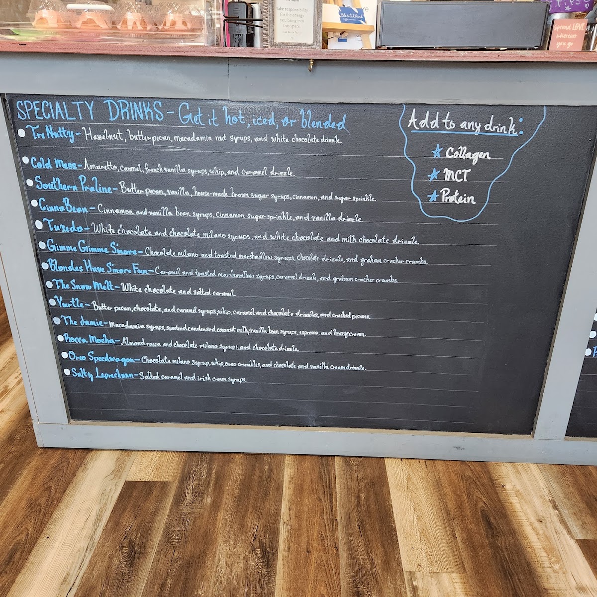 The Checotah Perk Menu offers a delightful variety of beverages, snacks, and treats that cater to all tastes, making it a must-visit spot in Checotah, OK. The coffee selection features the standout "Maybe It's Maple-Bean," a rich, warm option that's perfect for those craving a sweet, comforting cup. For something a bit more exciting, the Specialty Drinks section introduces the "Southern Praline," a flavorful and indulgent drink that brings a taste of the South to your palate.